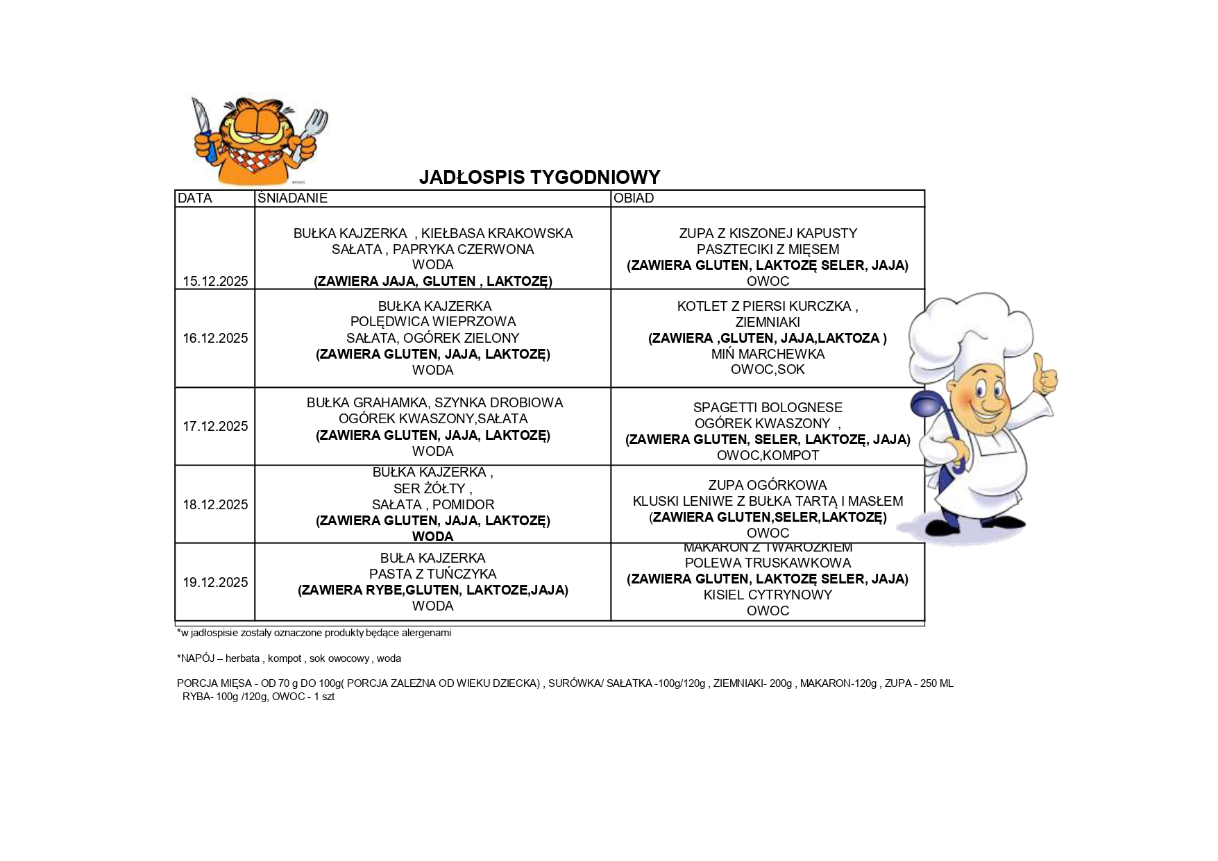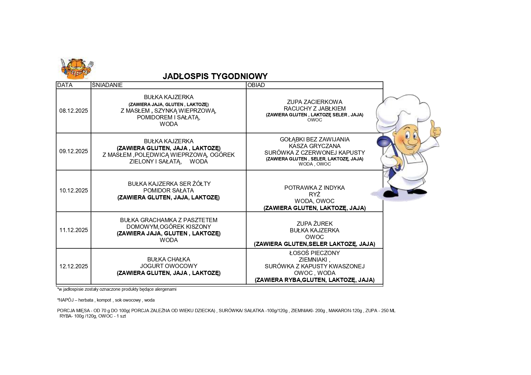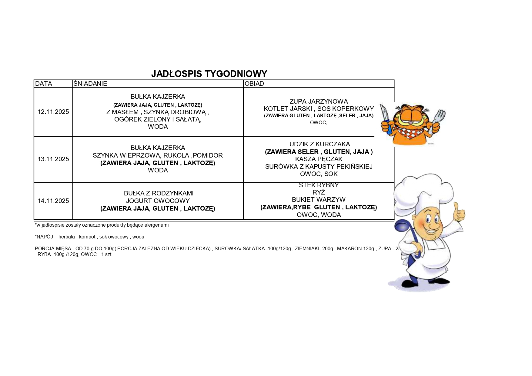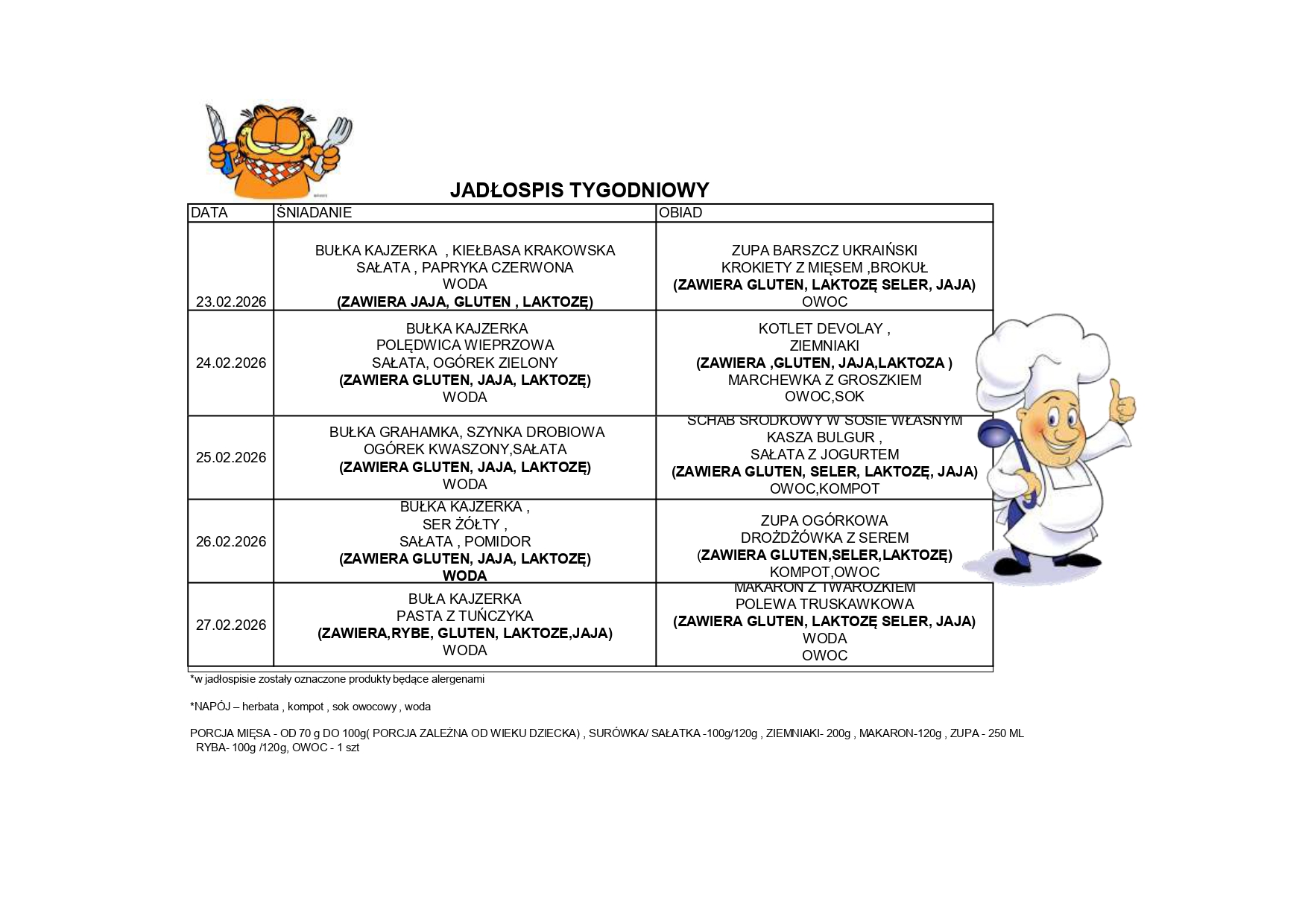 Nieobecności na posiłkach należy zgłaszać do godz. 9:00.