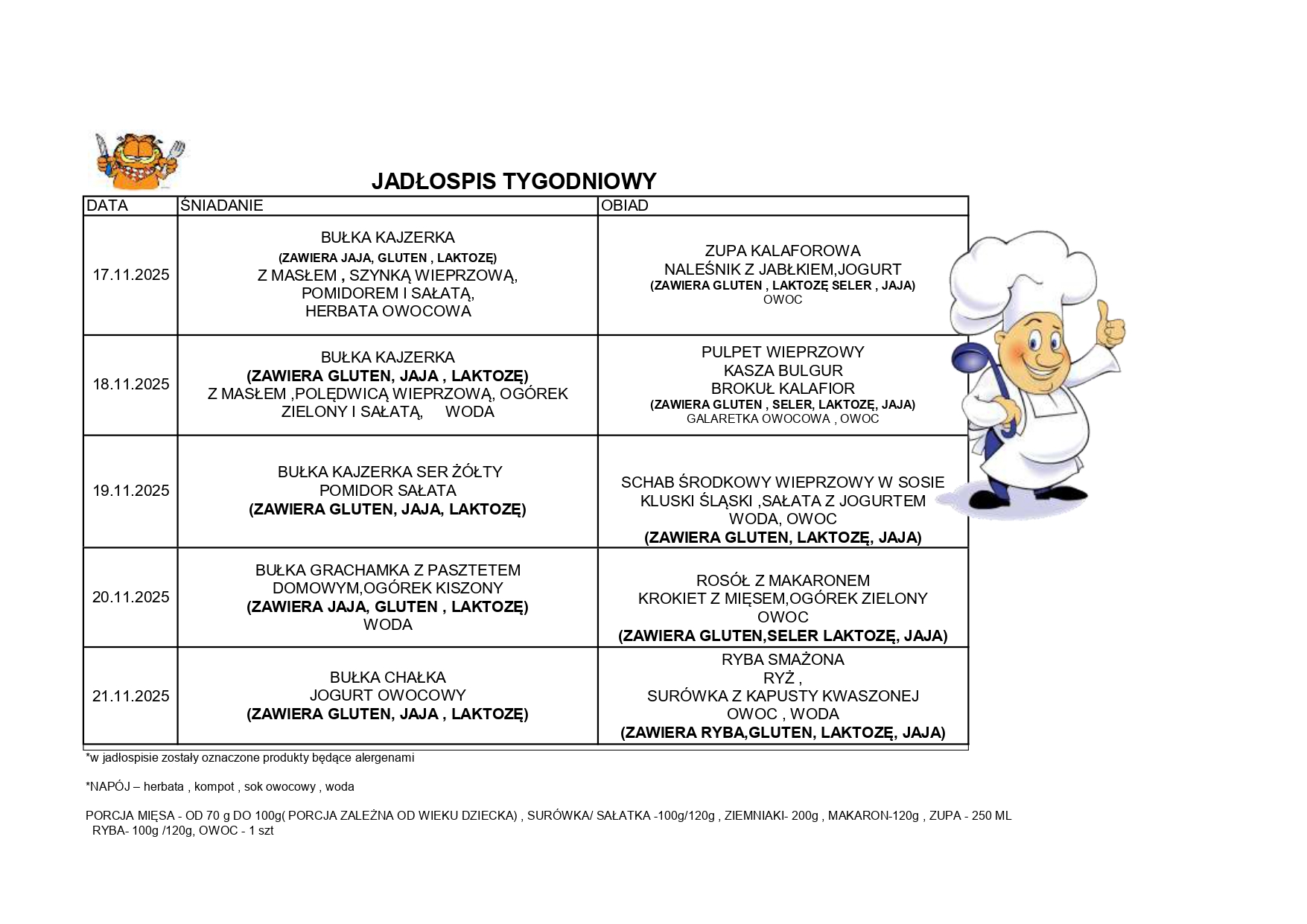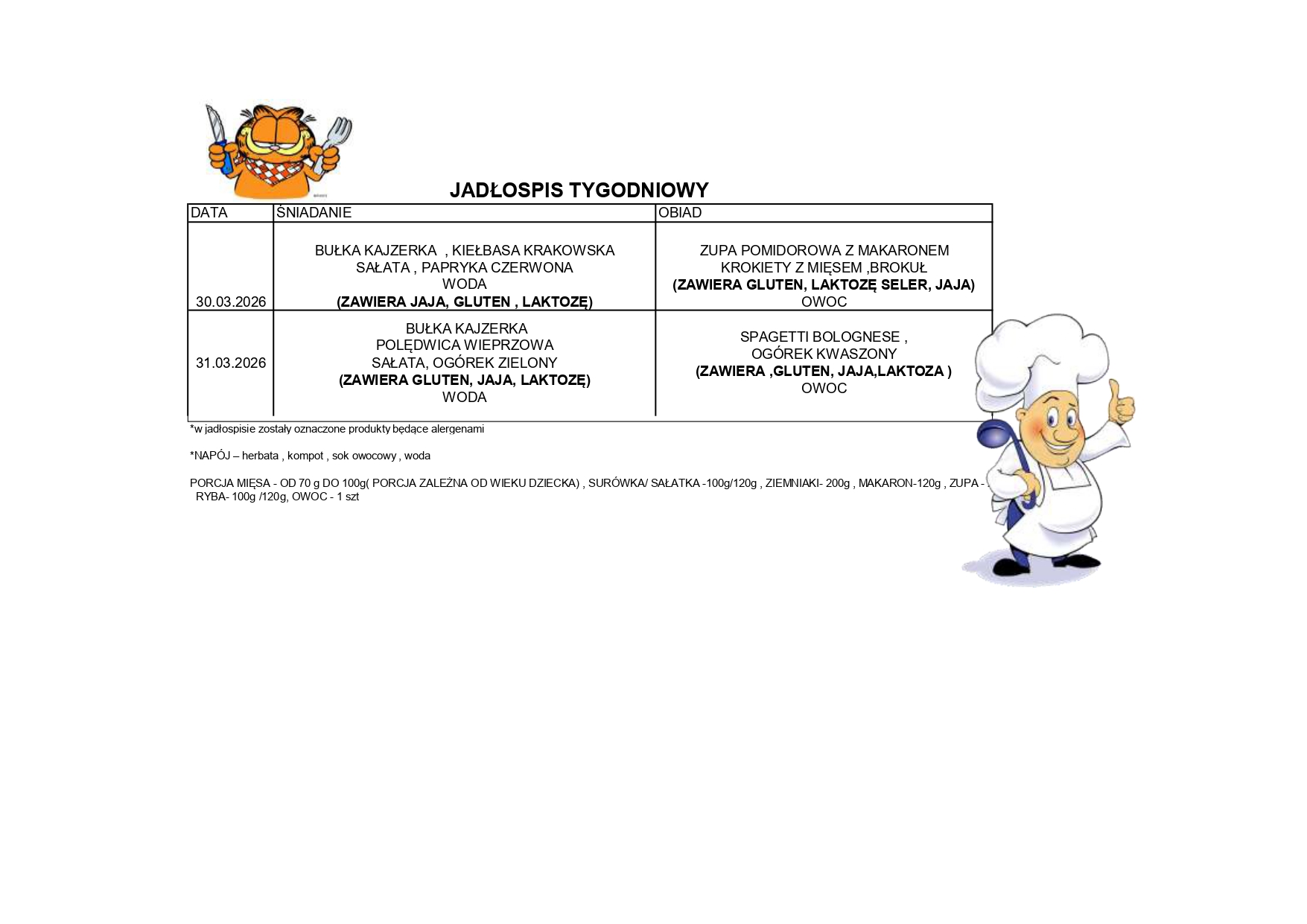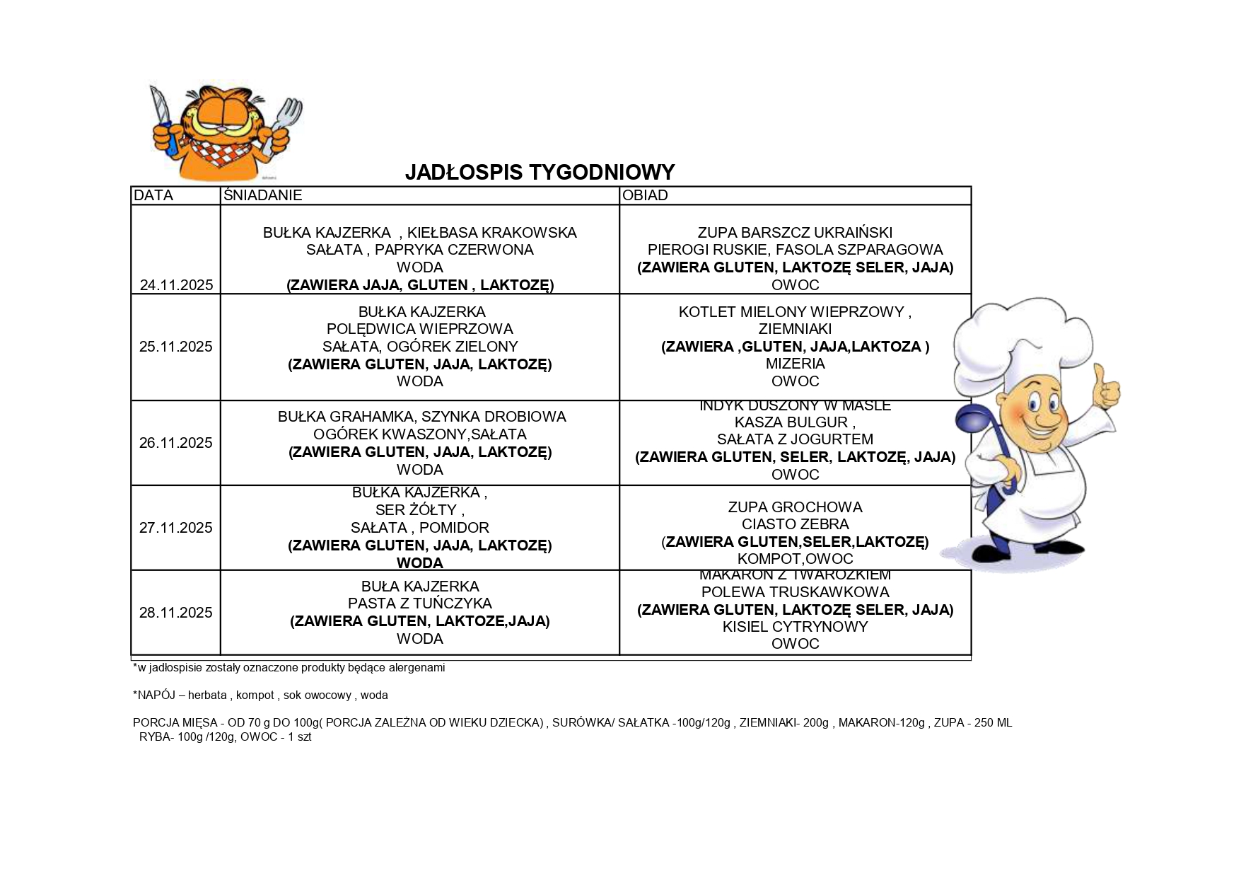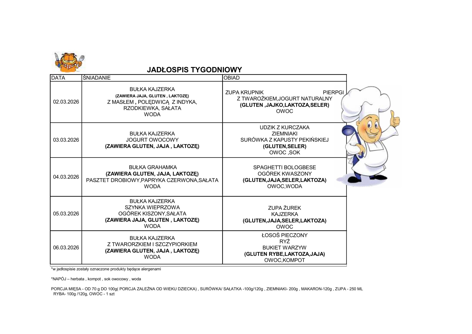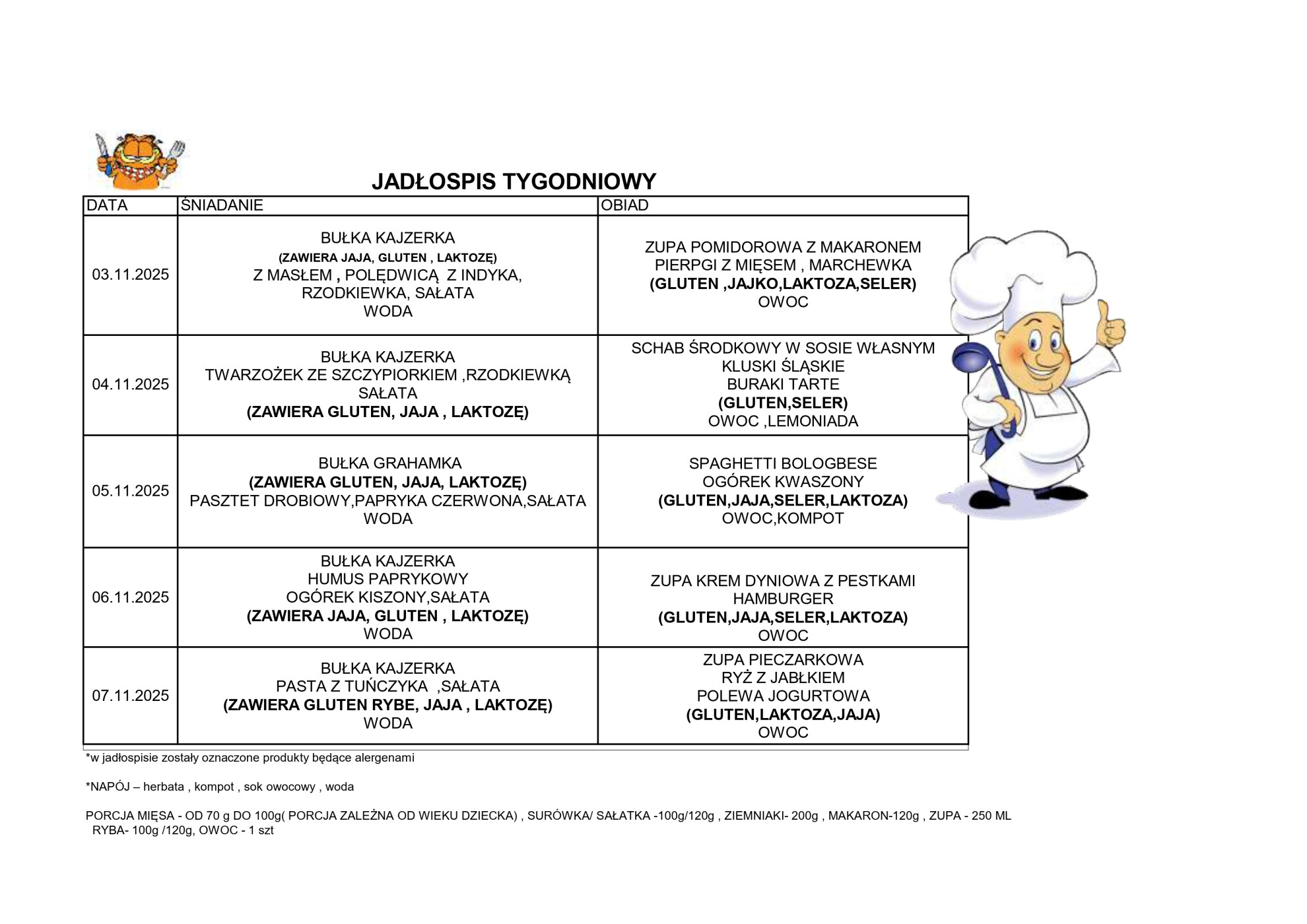 Nieobecności na posiłkach należy zgłaszać do godz. 9:00.