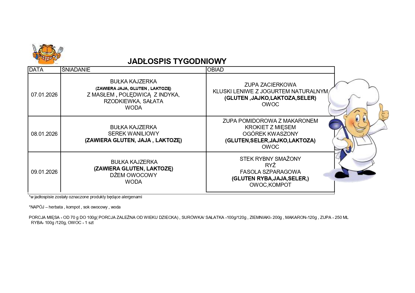 Jadłospis na tydzień 7.01- 9.01