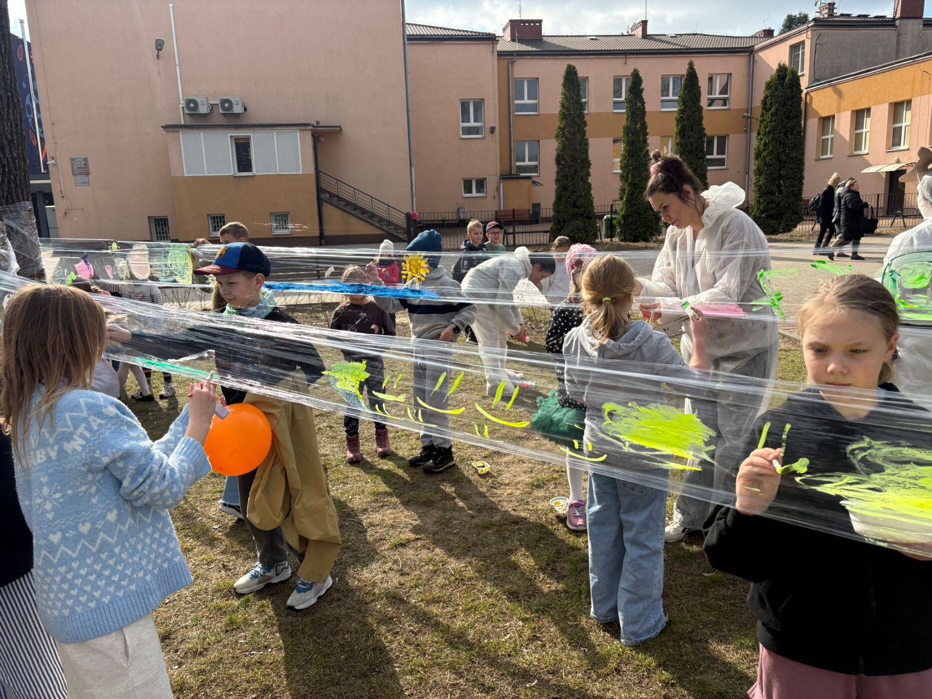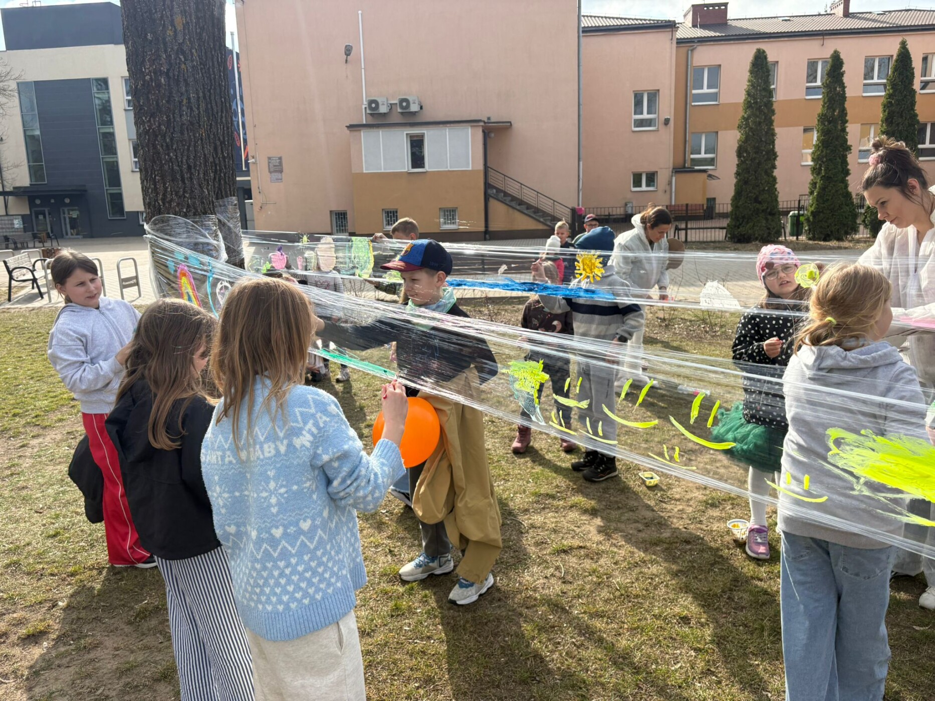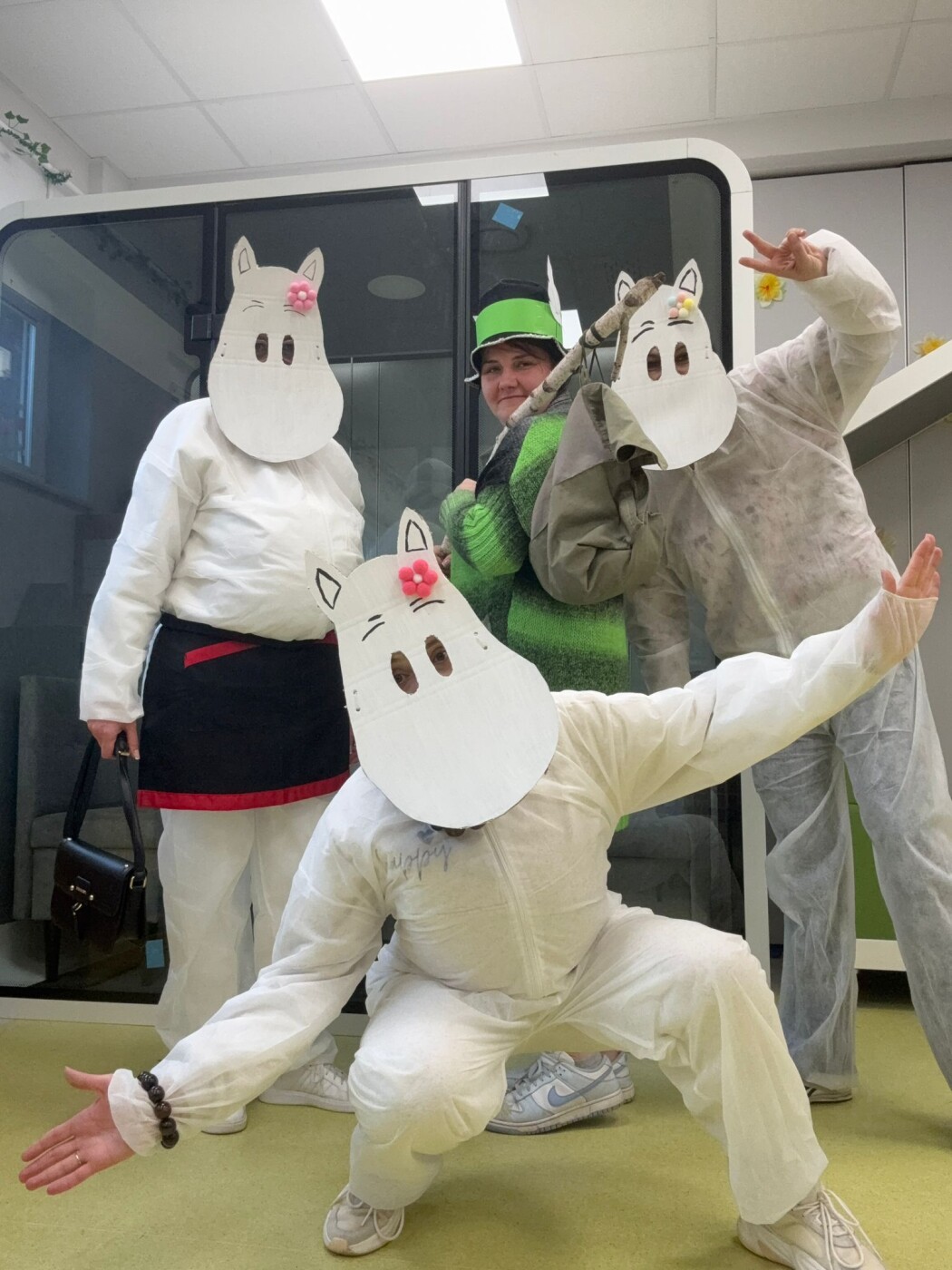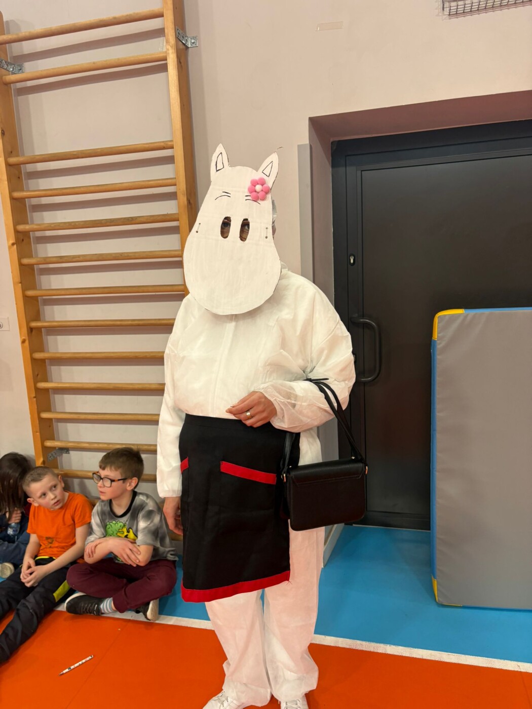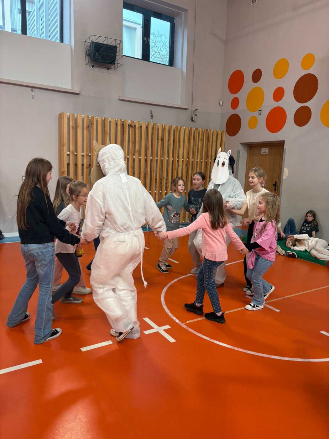 Postacie znane wszystkim z powieści Tove Jansson pojawiły się w szkole już od rana. Wspólnie czekaliśmy na pojawienie się wiosny. Najpierw w sali gimnastycznej, ale o 13.00, gdy zrobiło się cieplej i zaświeciło słońce, można już było rozpocząć zabawy na boisku szkolnym i ogłosić,