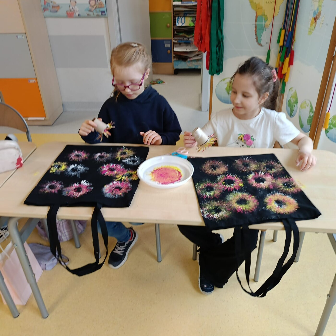 Najwięcej radości sprawiła część praktyczna – każdy uczestnik własnoręcznie ozdobił płócienną torbę, tworząc niepowtarzalne i ekologiczne dzieło. Powstałe torby z pewnością będą przypominać dzieciom o tym, jak ważna jest troska o naszą planetę.