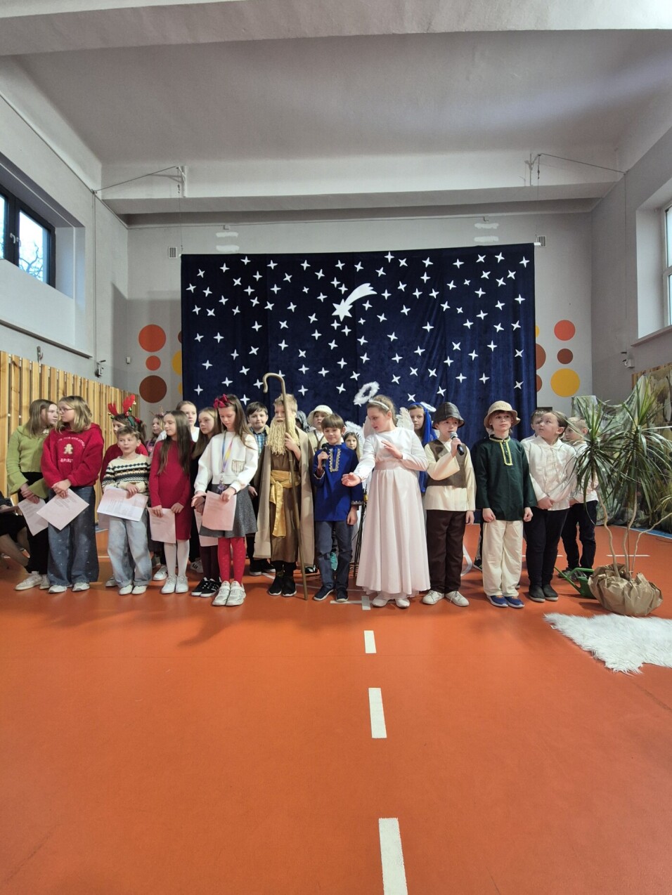 W 18 - 19 grudnia 2025 w naszej szkole odbyły się doroczne Jasełka pt. „Cuda, cuda ogłaszają”. Była to opowieść o niewidomym pasterzu, który przybywa do Jezusa do Betlejem i zostaje uzdrowiony przez Pana Jezusa. Występ przygotowali uczniowie klasy IV b i IV c. Cała społeczność szkolna w pełnym skupieniu oglądała całe widowisko.