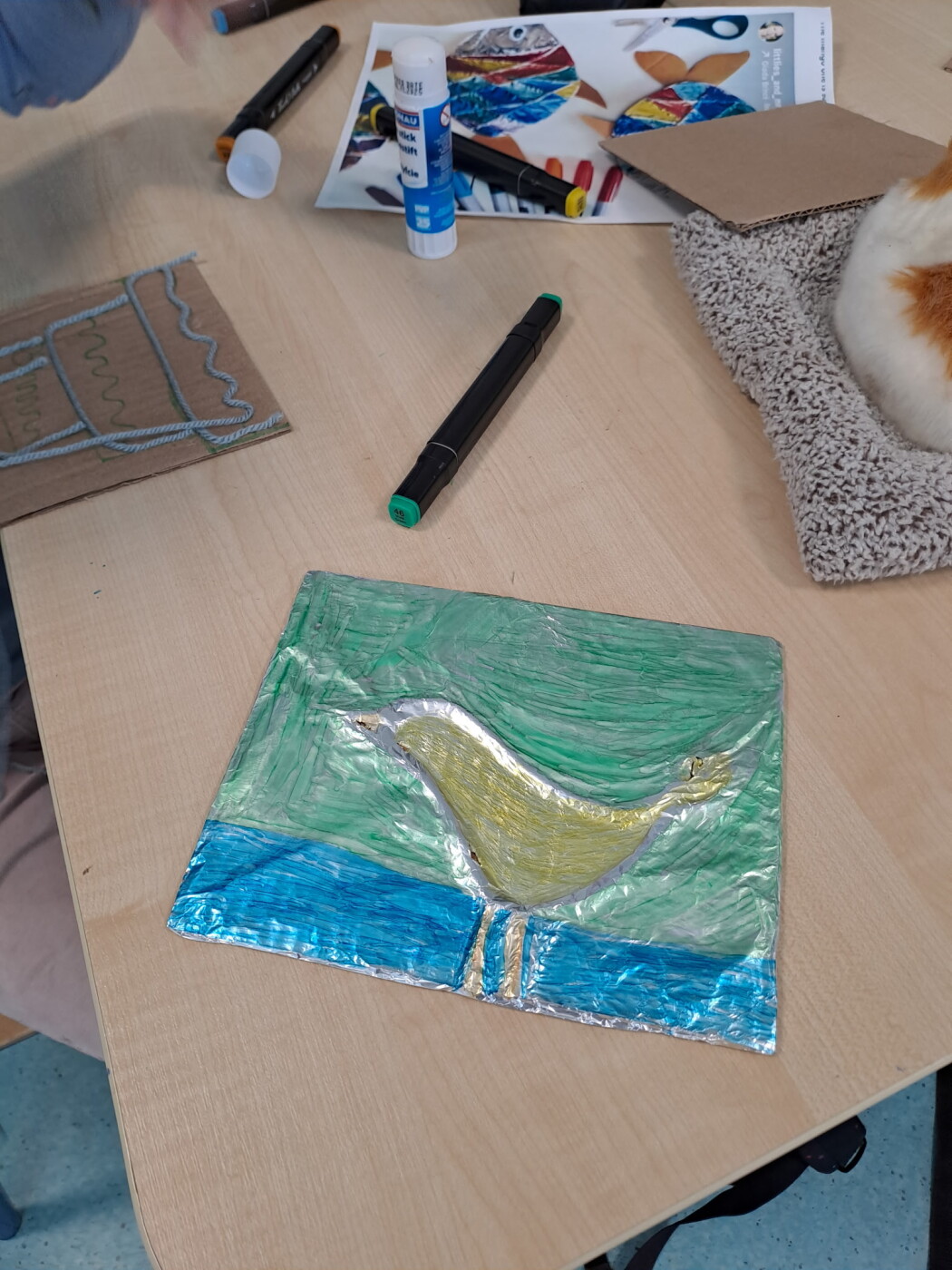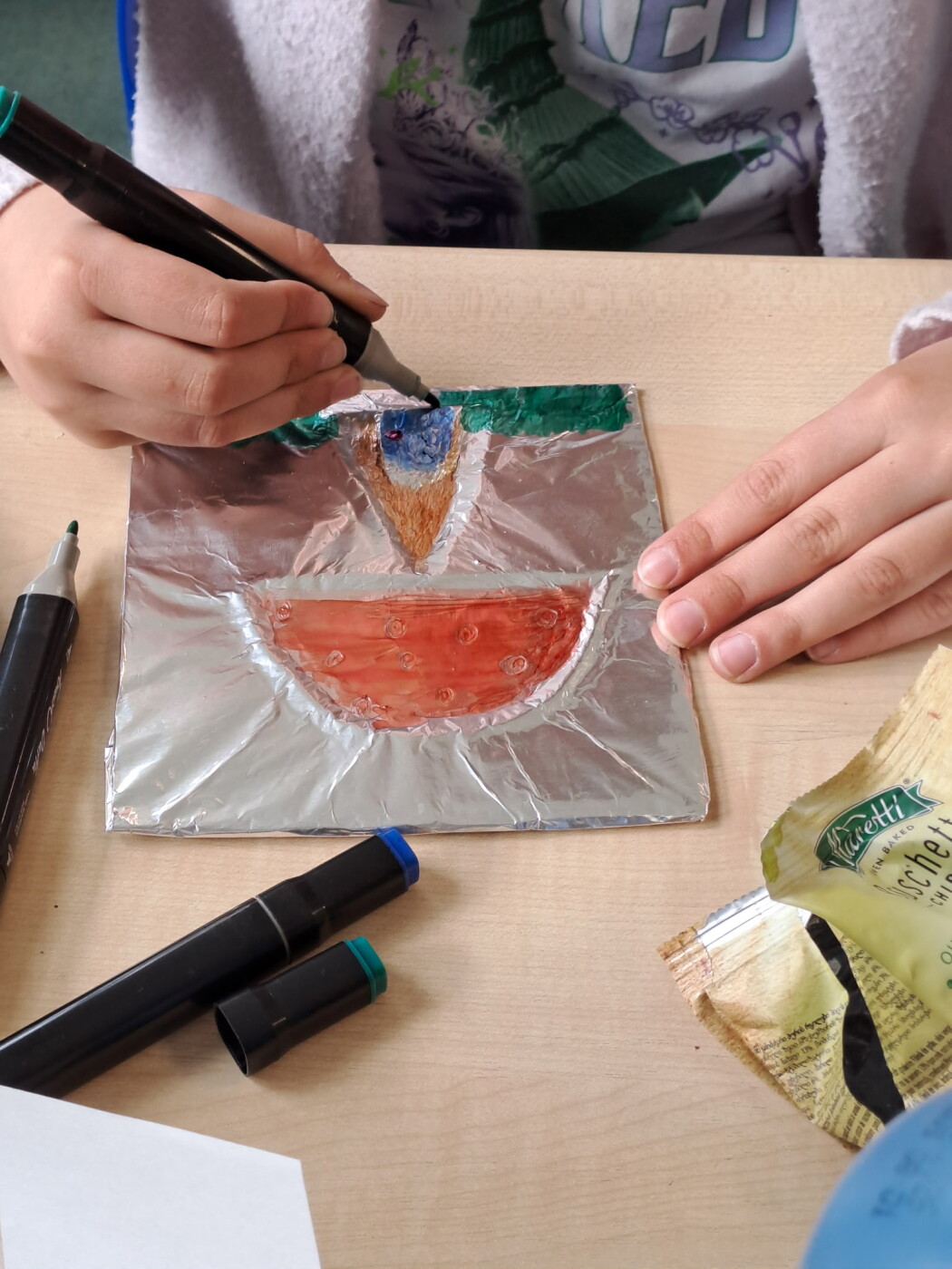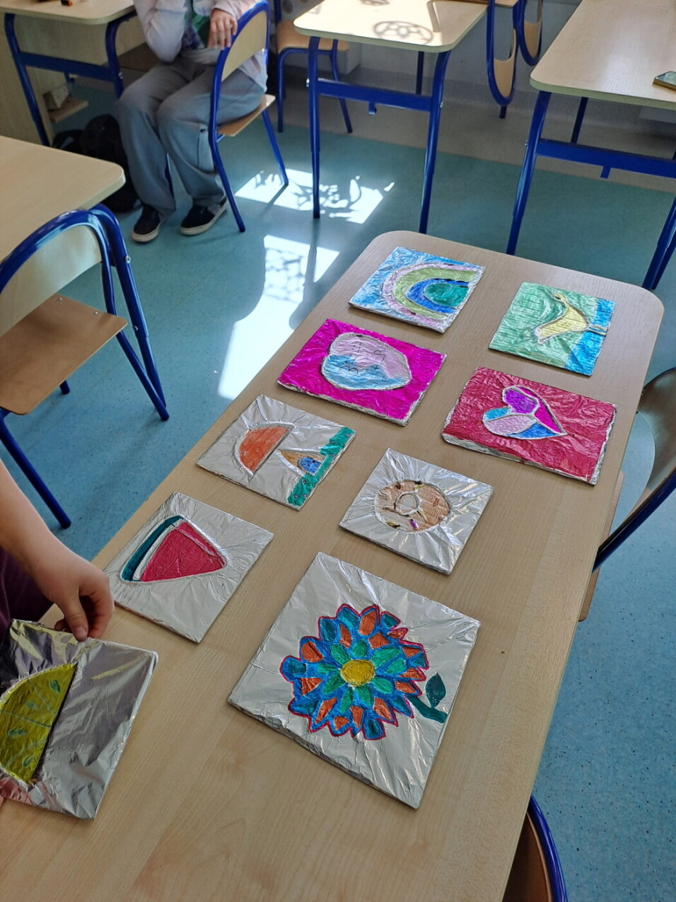 W piątek, 24 kwietnia Pani Kinga Berowska z WCK Falenica poprowadziła kolejne w tym roku zajęcia plastyczne dla dzieci ze świetlicy w naszej szkole. Wystarczyło mieć: tekturkę, folię aluminiową, włóczkę, kolorowe flamastry aby powstały te śliczne, kosmiczne obrazki 😊)) Dzieci z zaciekawieniem i radością odkrywały kolejne etapy powstawania swoich prac.