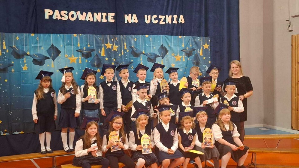 Czwartkowe popołudnie było w naszej szkole pełne radości. Kolejny rocznik uczniów klas pierwszych został pełnoprawnie przyjęty do społeczności szkolnej i złożył ślubowanie. W radosnej i podniosłej atmosferze odbyło się pasowanie na ucznia wychowanków pani Beaty Korony i pani Pauliny Bielińskiej.