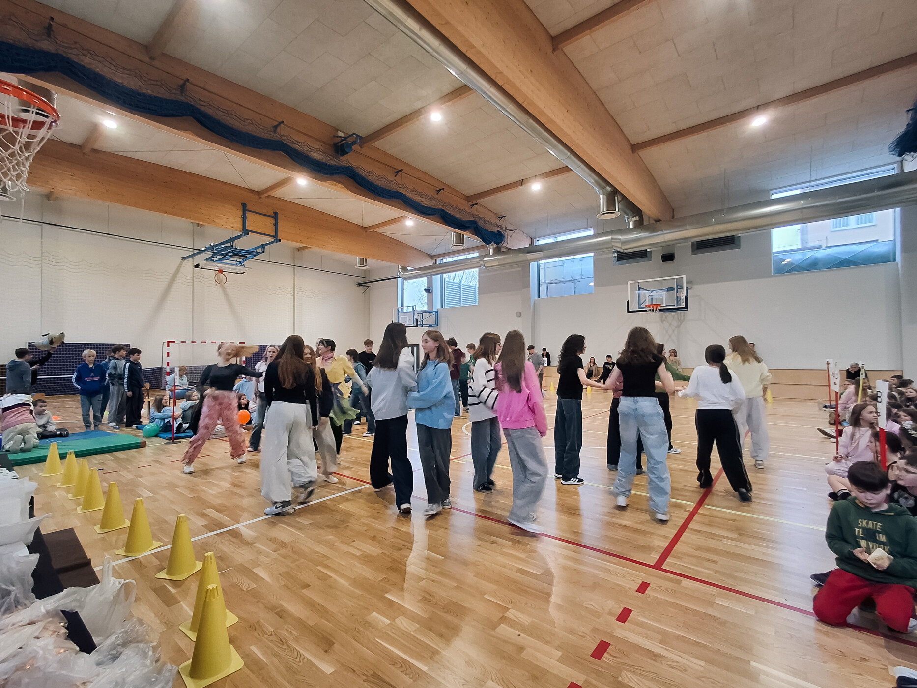 Cała społeczność szkolna, uczniowie i nauczyciele, wspólnie zatańczyli Belgijkę. Widok tak wielu osób bawiących się w jednym rytmie był idealnym podsumowaniem tego radosnego dnia.