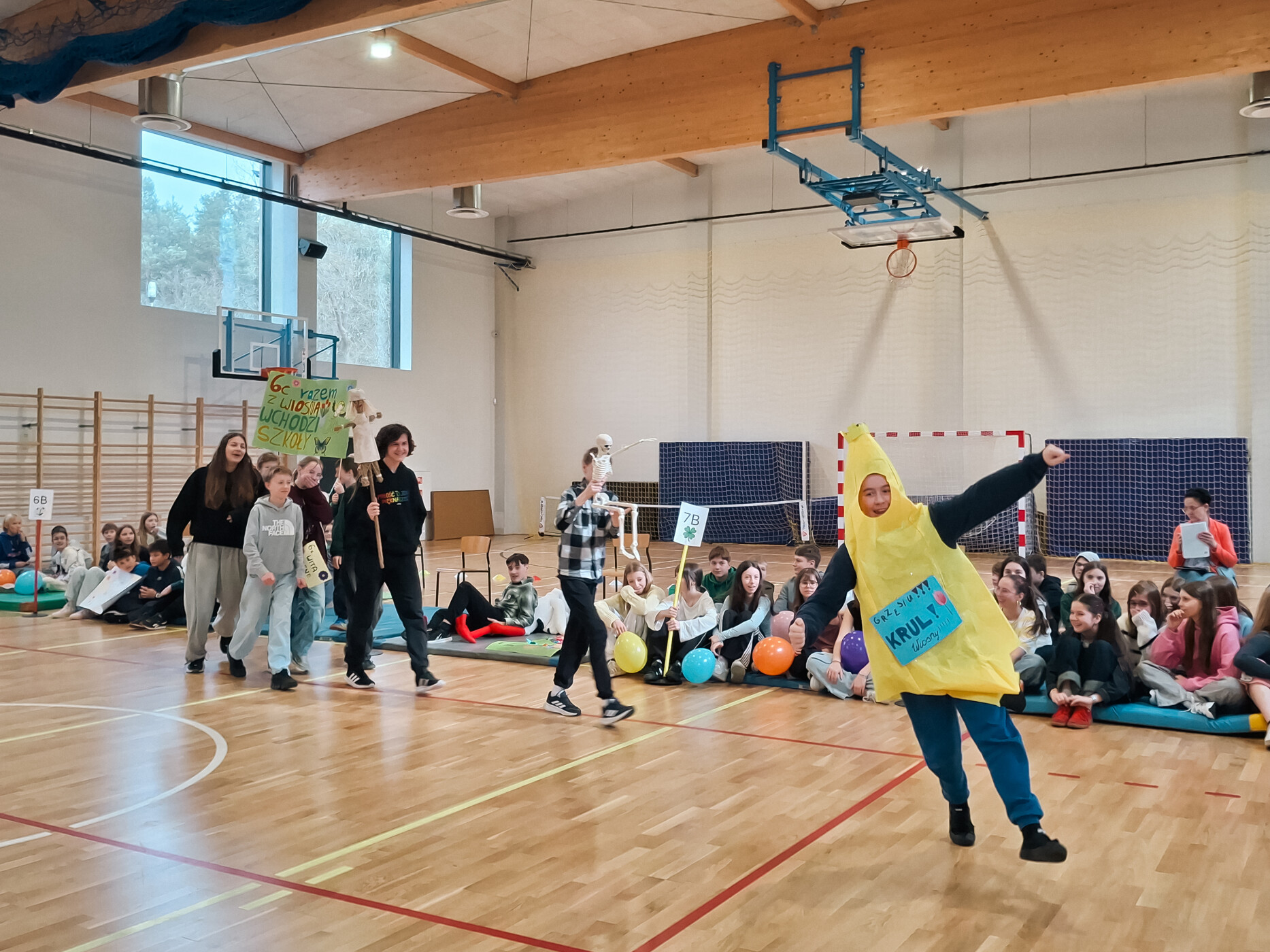 Dzień rozpoczęliśmy od widowiskowej Prezentacji Klas. Każda klasa miała okazję przemaszerować i pokazać swój unikalny charakter. Zobaczyliśmy zgrane zespoły, ciekawe hasła i mnóstwo uśmiechów.