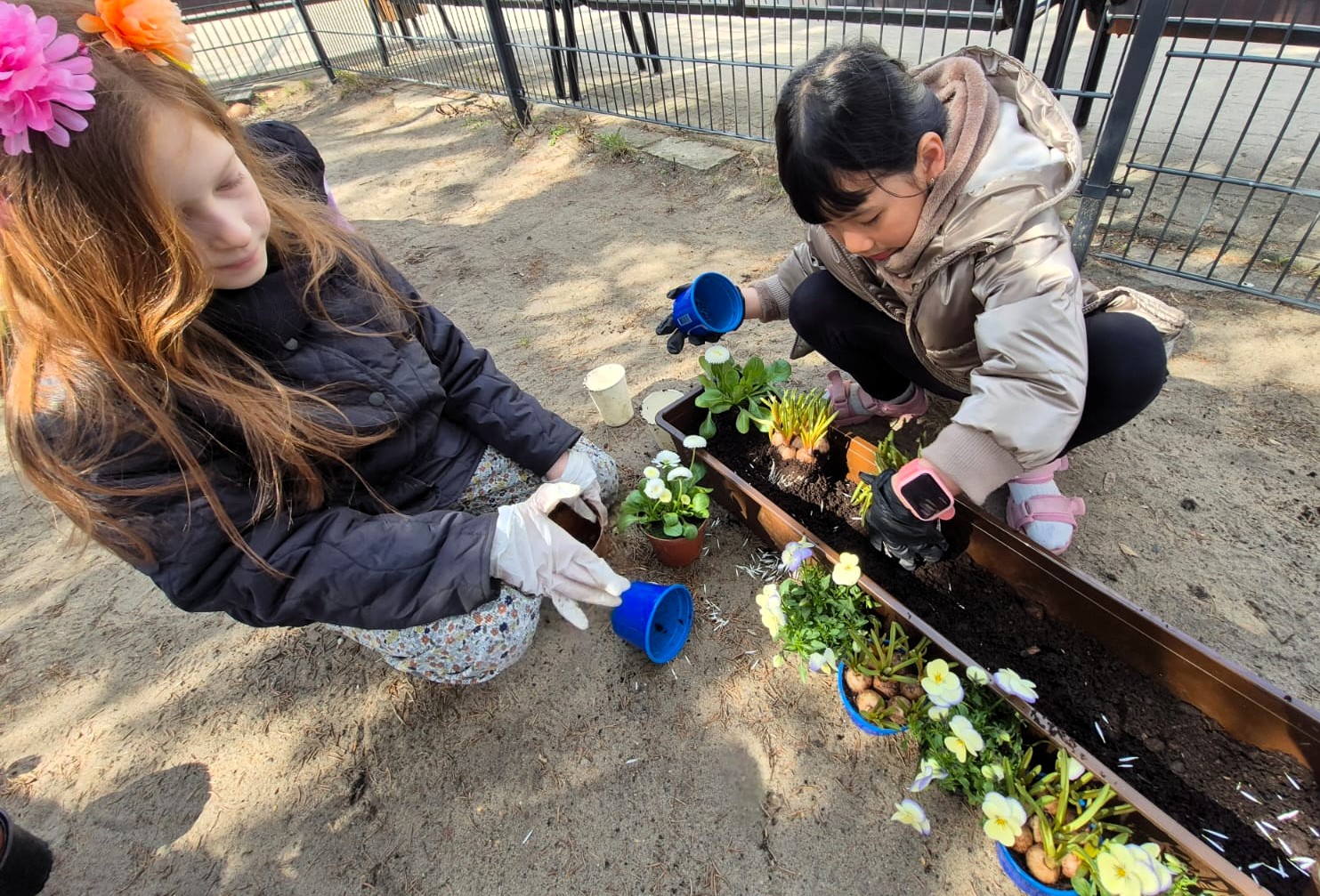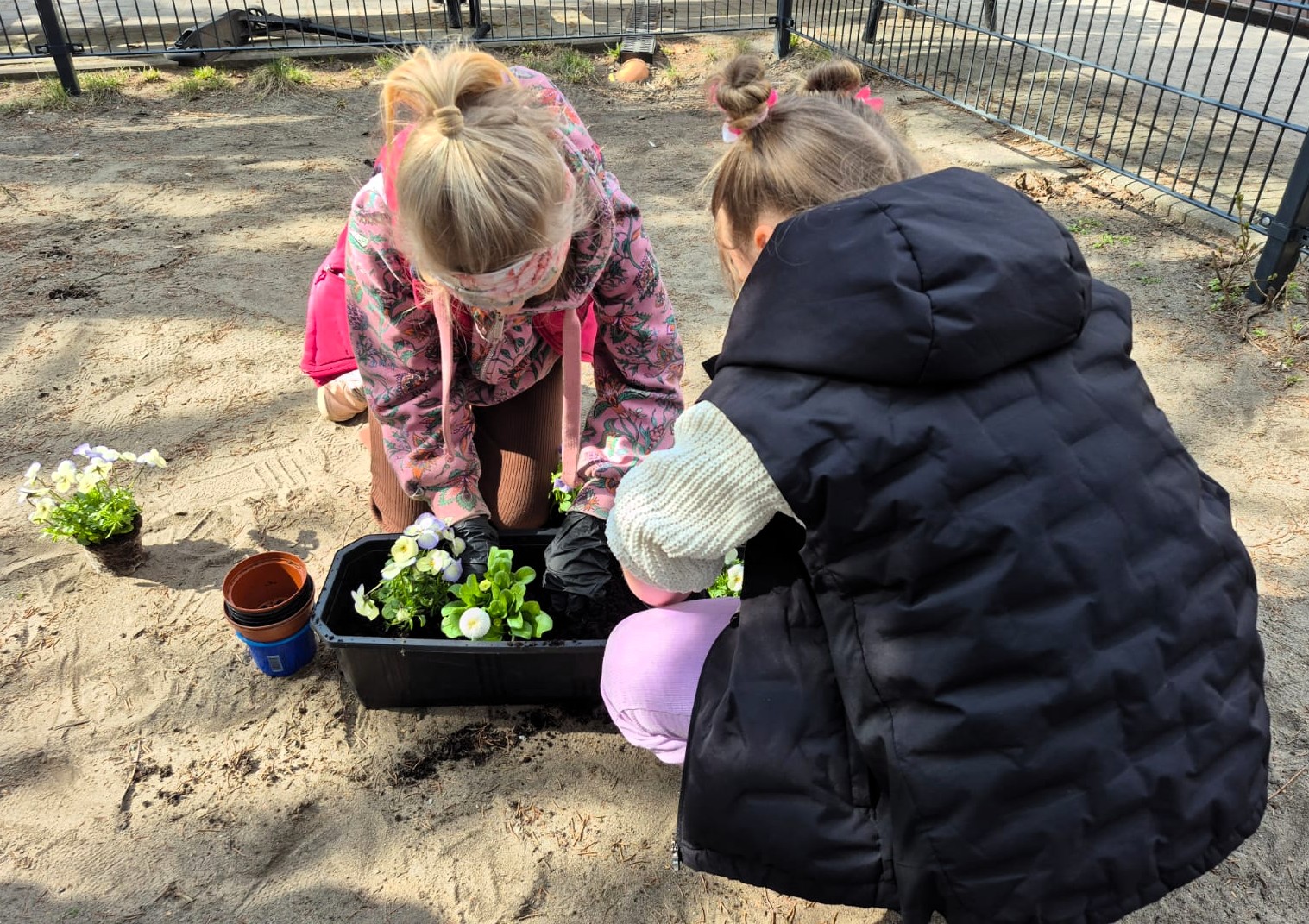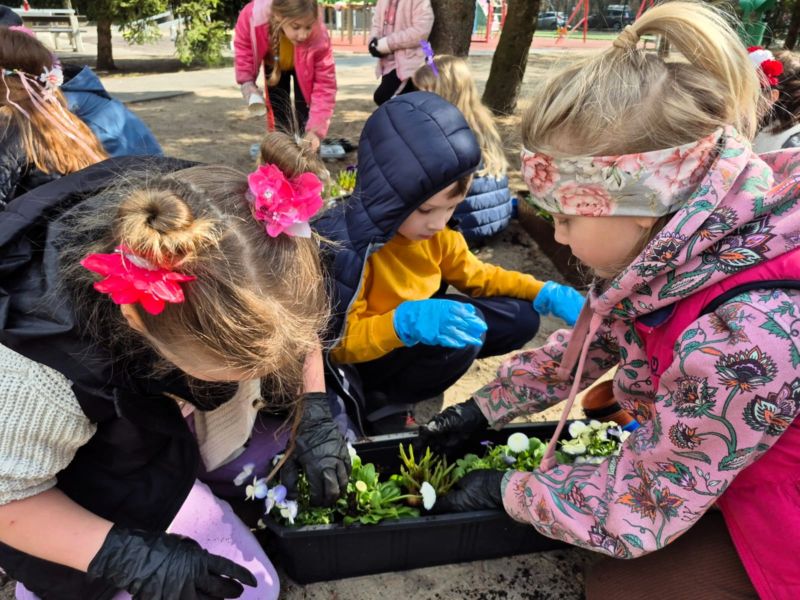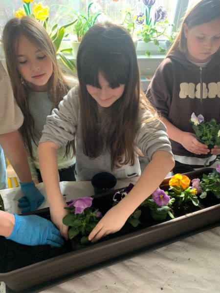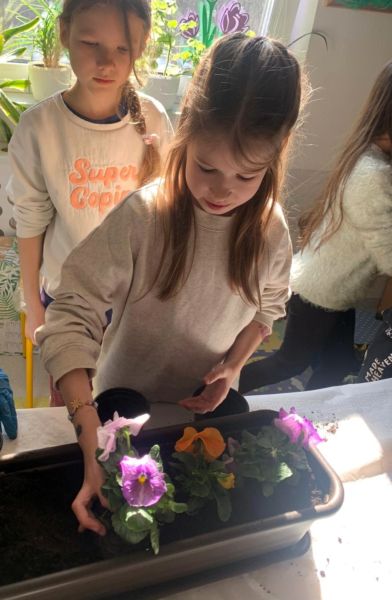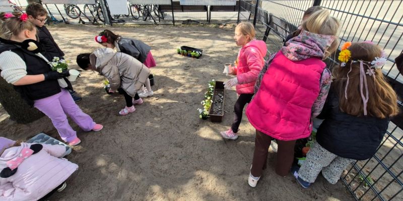 Z okazji pierwszego dnia wiosny uczniowie klas 1–3 wzięli udział w wyjątkowej, pełnej radości i zaangażowania akcji sadzenia kwiatów. Dzieci sadziły kolorowe bratki do doniczek oraz skrzynek.