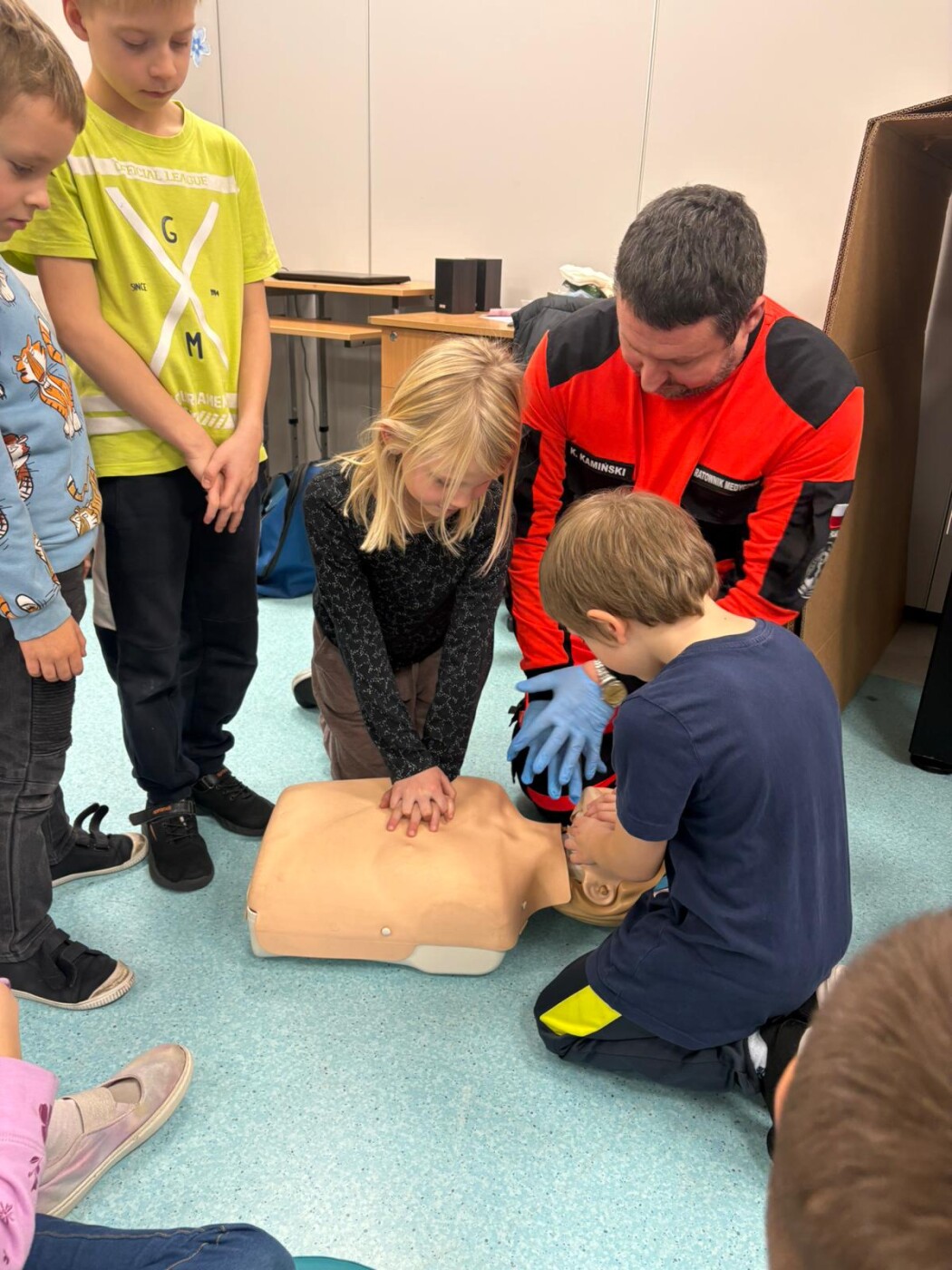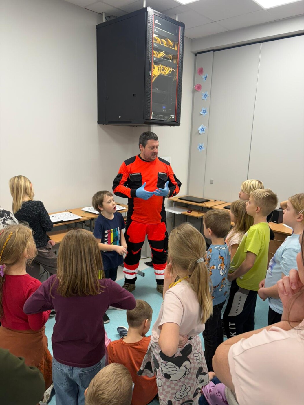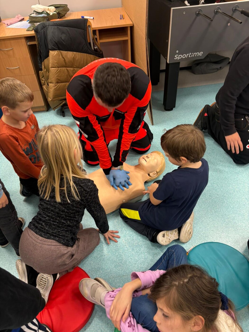 W świetlicy szkolnej gościliśmy ratownika medycznego, pana Kajetana. Podczas spotkania pokazał dzieciom, jak reagować w sytuacjach zagrożenia zdrowia, a także przypomniał, jak ważne jest dbanie o własne bezpieczeństwo oraz bezpieczeństwo innych osób.