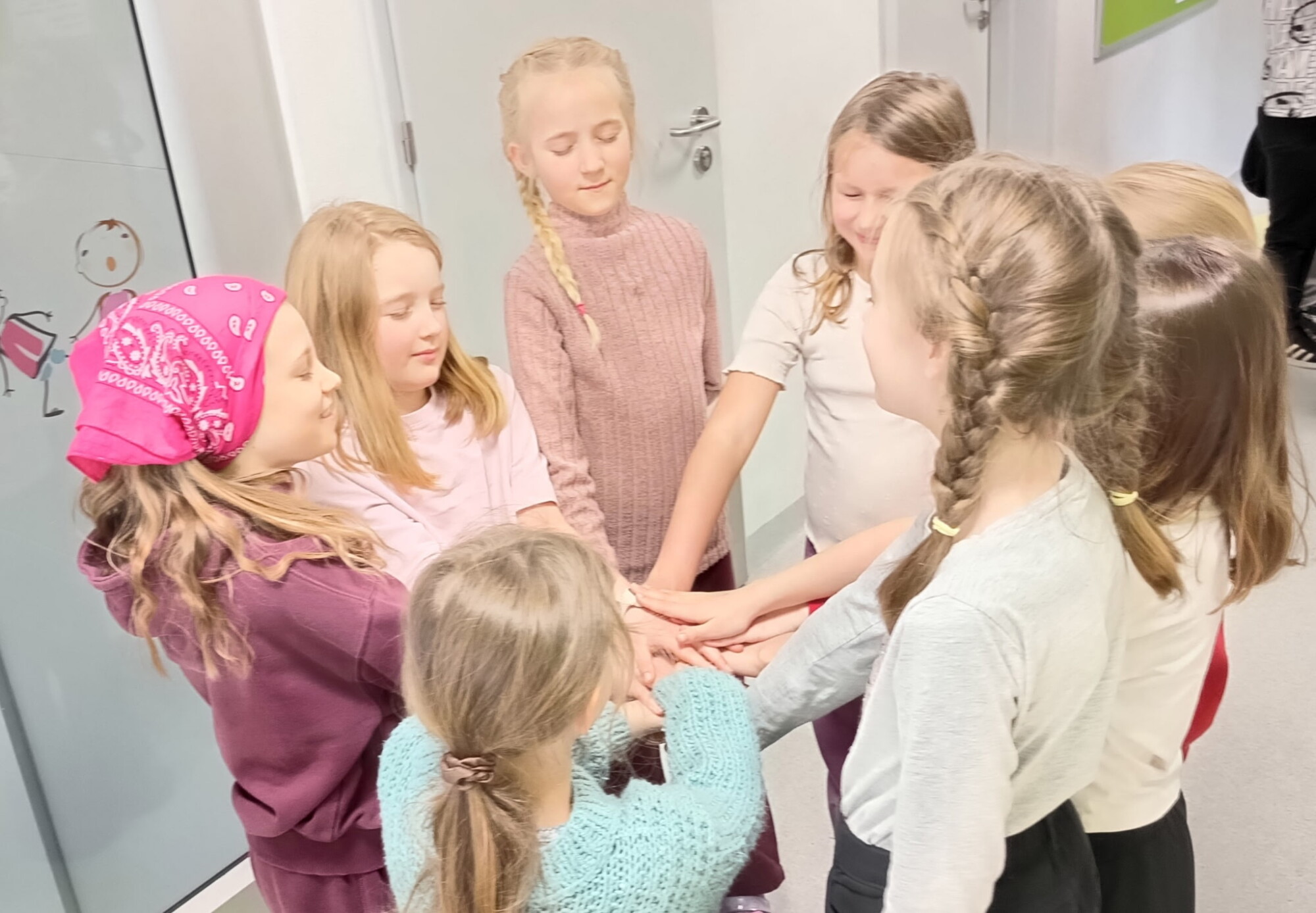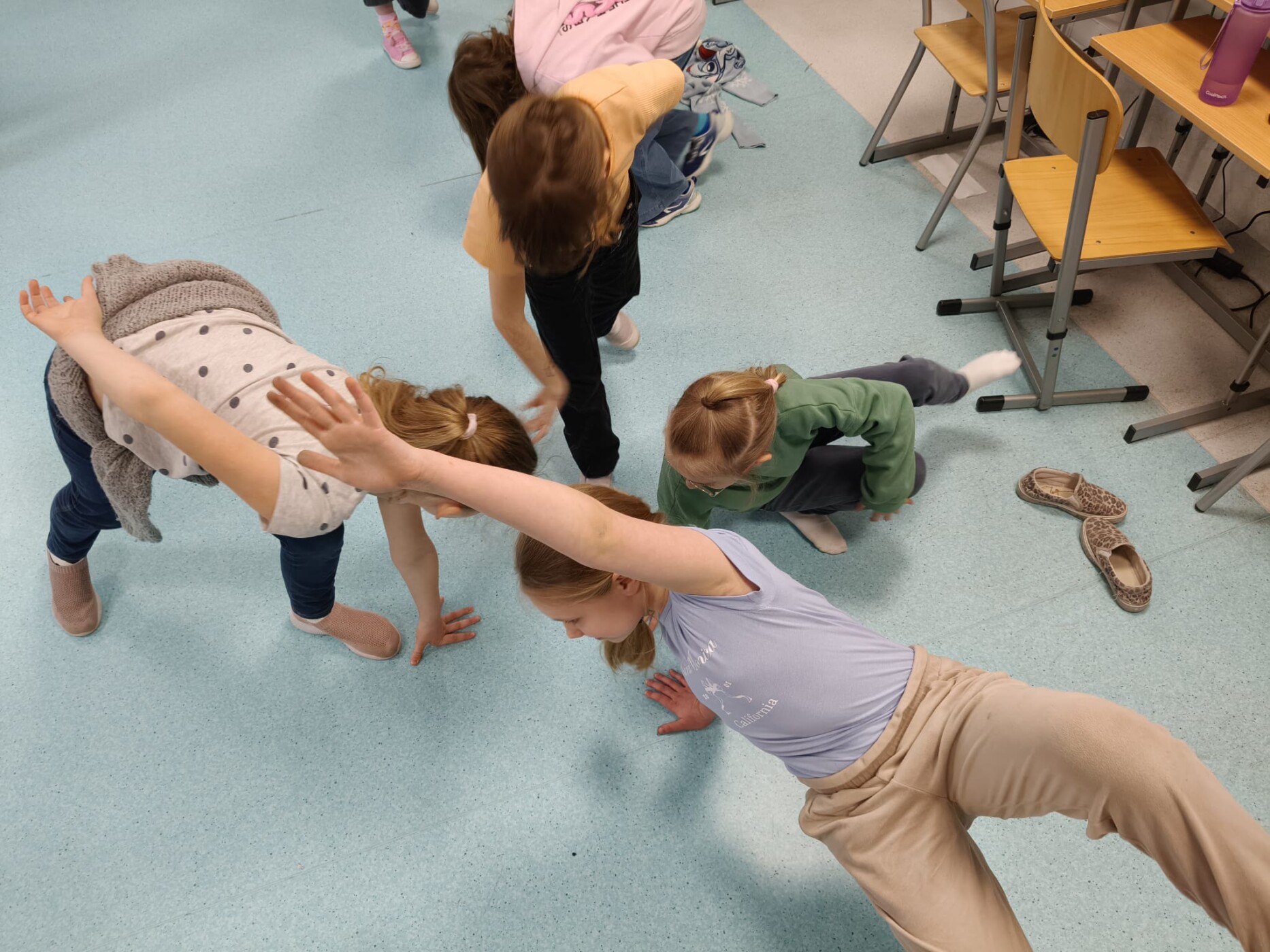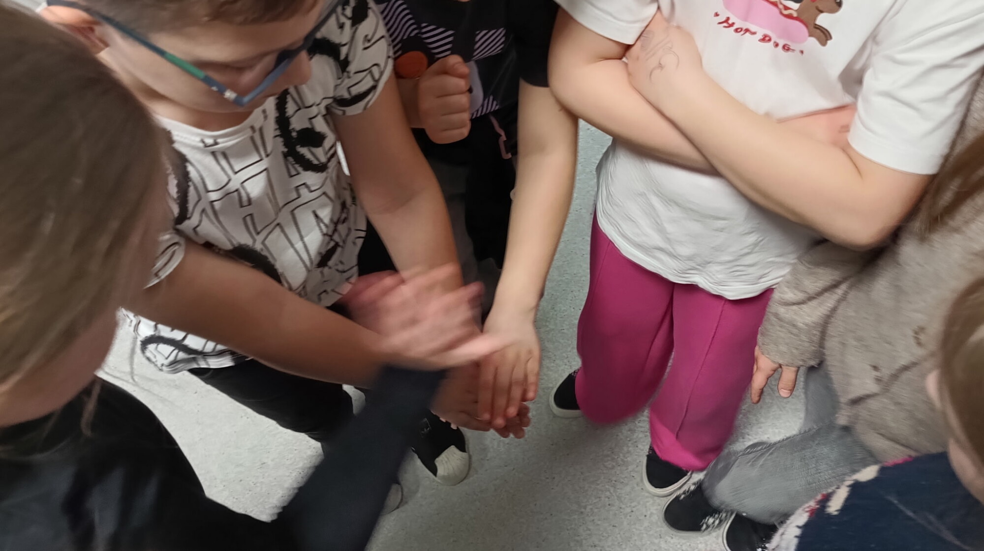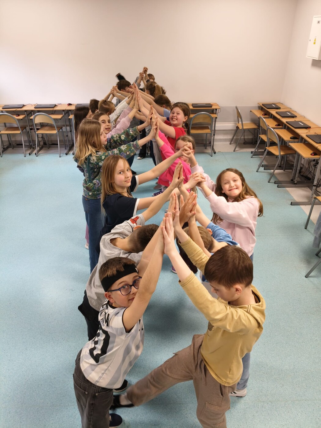 Dzieci z klas 1 -3 pracowały w grupach, integrując się ze sobą np. wykonując rzeźbę klasową. W klasach starszych, na godzinach wychowawczych, zastanawiali się co znaczy przynależność, jakie ma znaczenie i co robić by samemu znaleźć wspierających przyjaciół, a także jak pomóc innym czuć się dobrze w szkole i klasie. W parach lub pojedynczo wykonali również liście na „Drzewo Dobrych Myśli”. NA wyciętych liściach pisali coś motywującego, miłego, inspirującego co sprawi, że osoba czytająca to poczuje się lepiej lub zmotywowana do działania. Liście zostały powieszone na dwóch wiosennych „DRZEWACH DOBRYCH MYŚLI”.