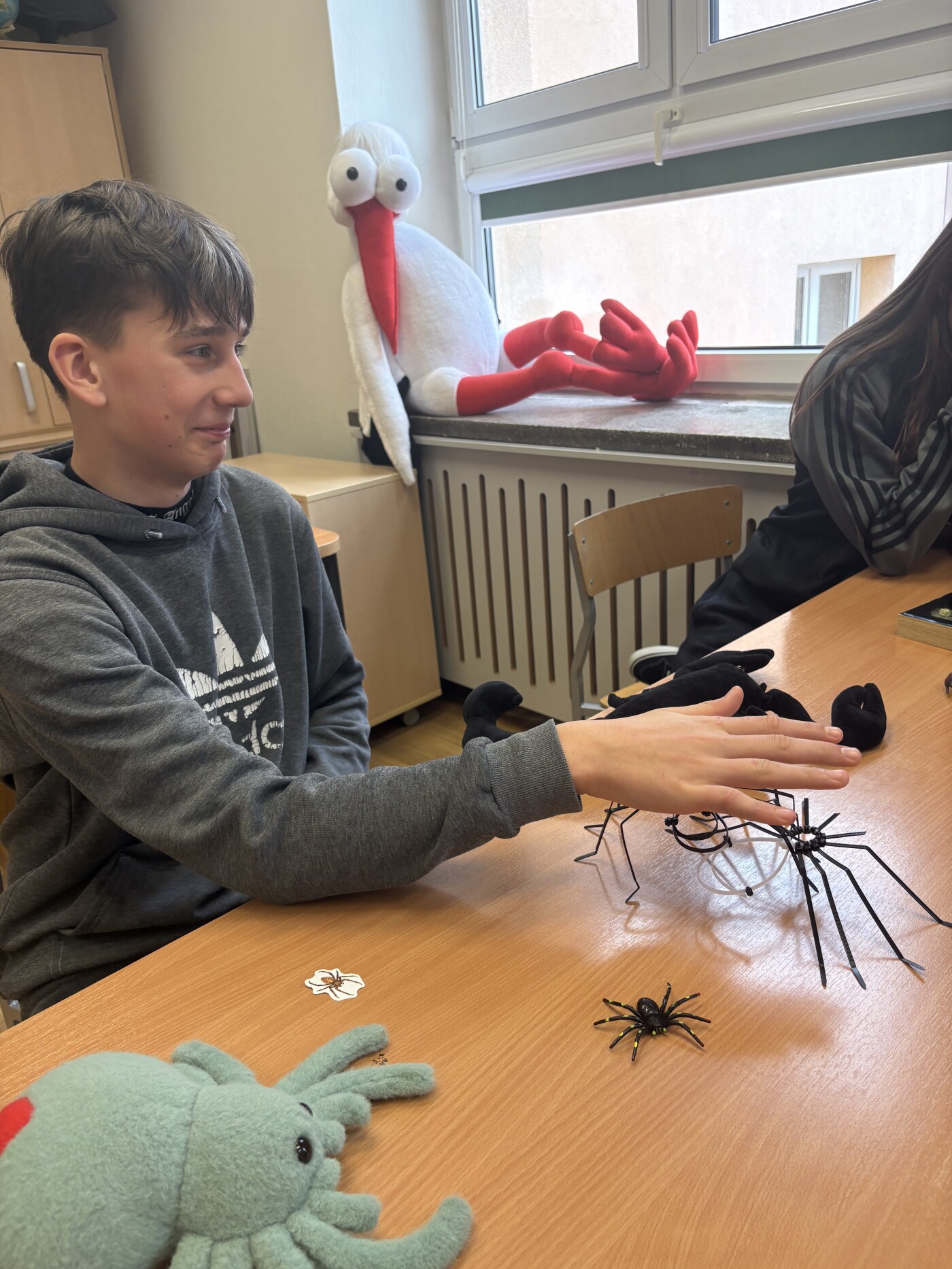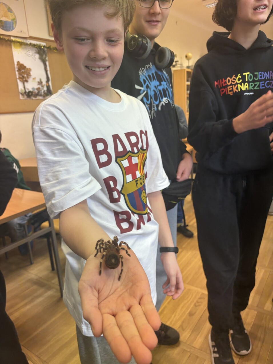 Podczas zajęć, uczestnicy dowiedzieli się o zachowaniu godowym pająków, ich pokarmie i anatomii. Na koniec warsztatów, odważni uczniowie, mieli okazję wziąć na rękę dwa gatunki ptaszników. Była to kolejna lekcja biologii polegająca na łączeniu teorii z podręczników z praktyką! Było super!