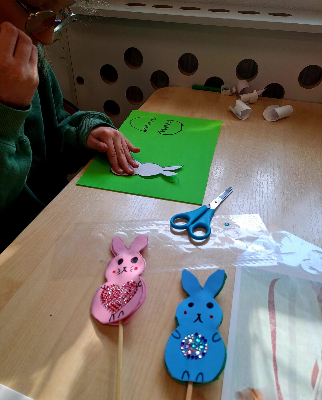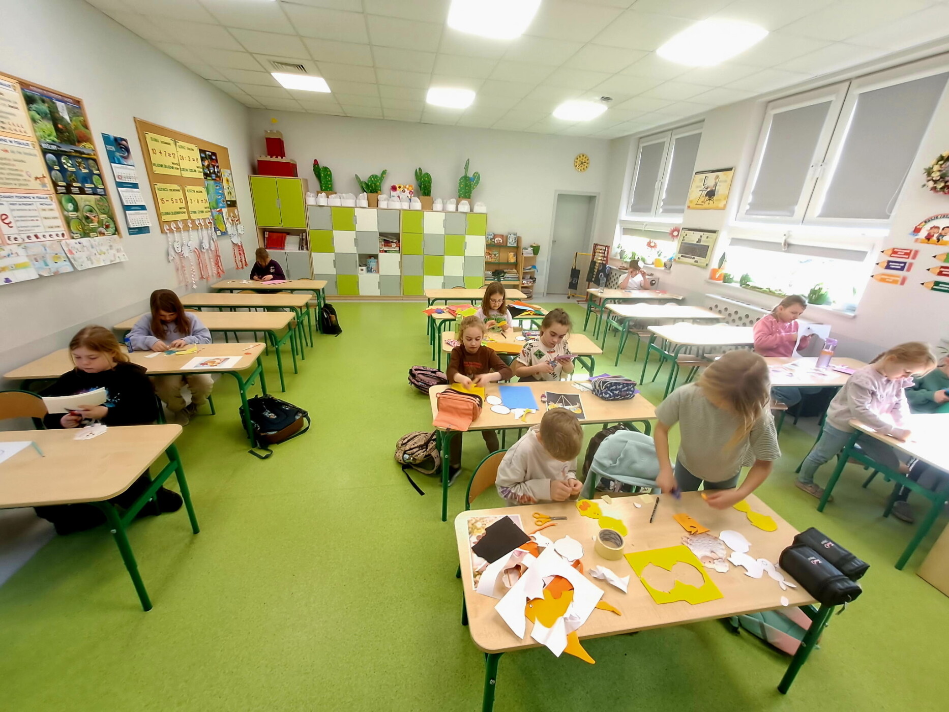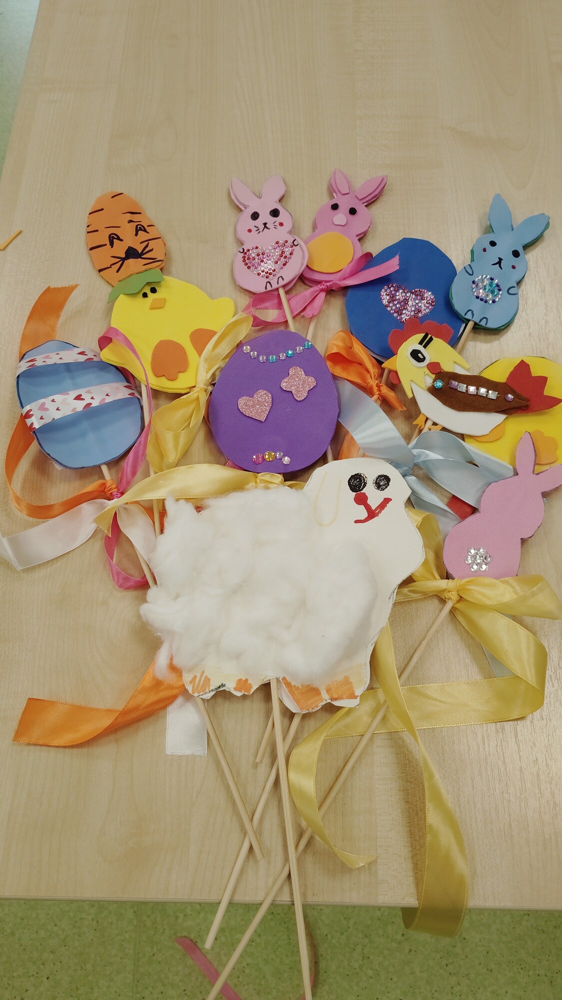 Jajka, zajączki, kurki, baranki- takie wielkanocne ozdoby z filcu i pianki wykonały wczoraj dzieci w świetlicy razem z p. Kingą Berowską z WCK Falenica.